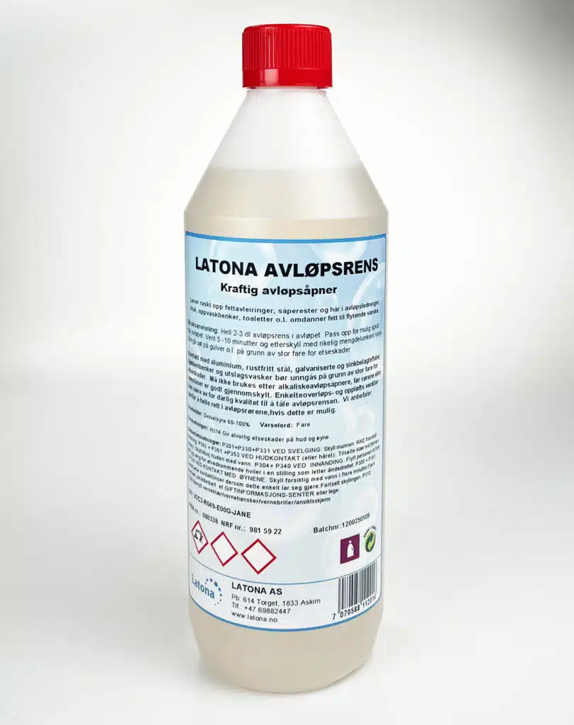 Latona avløpsrens er et meget kraftig middel og må derfor behandles med varsomhet.
